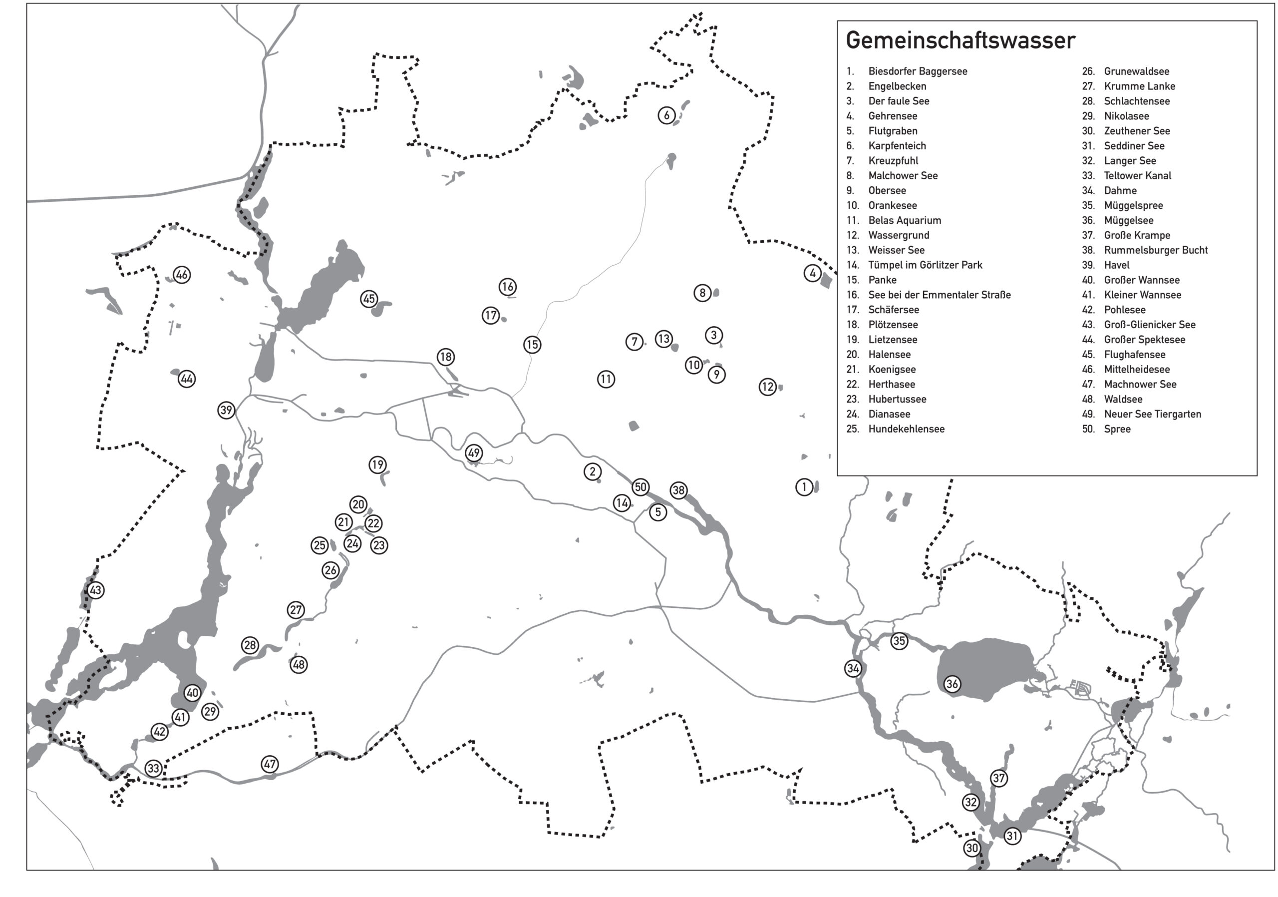 Berliner Wasser, nummeriert / Berlin water, numbered, Glas / Glas, Karte / Map