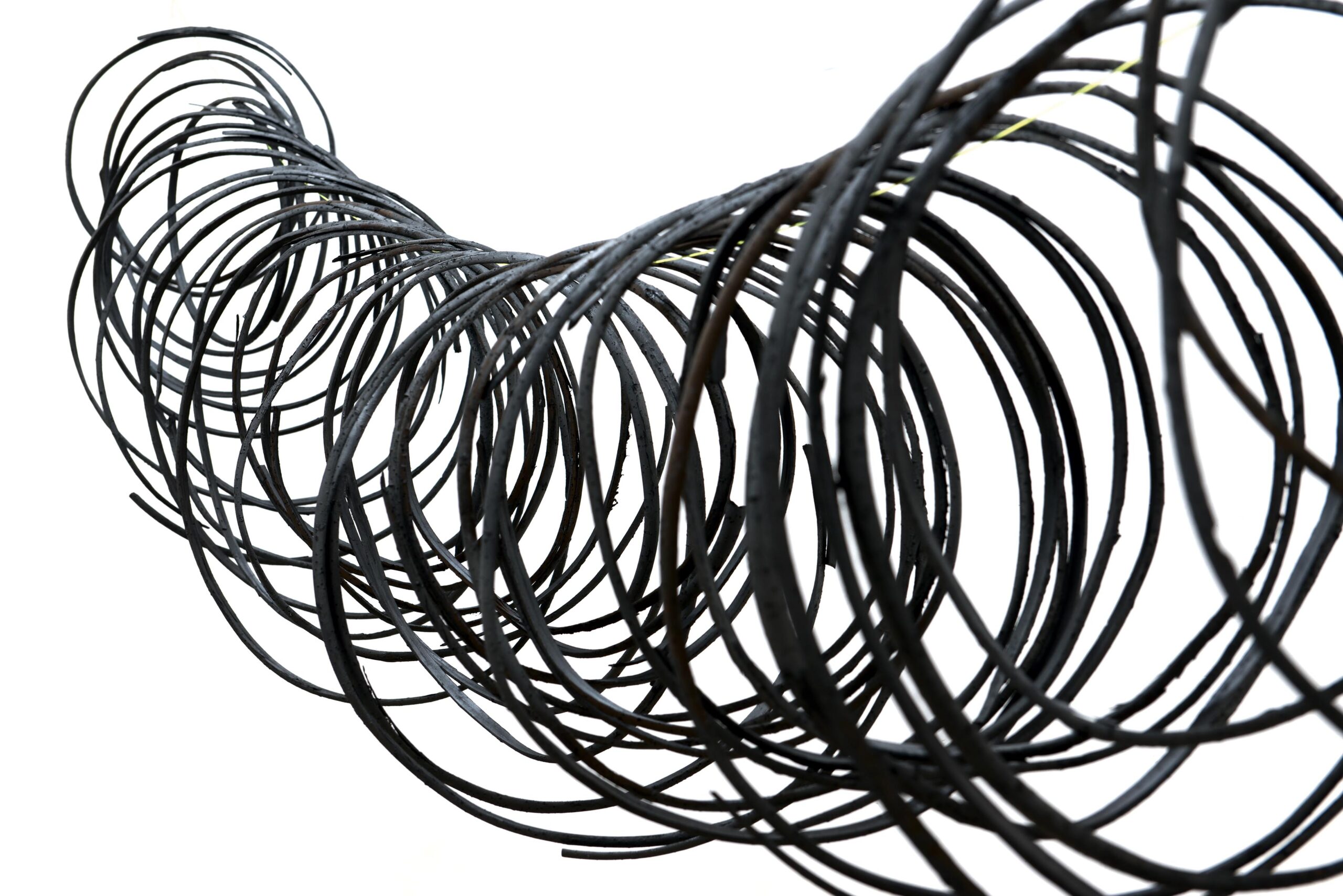 In Black Holes, Ulrike Mohr uses carbonized willow hoops to form a kind of tunnel-like structure, inviting viewers to move through and experience shifting spatial dynamics. The hoops, transformed through charring, balance fragility and resilience, their circular shapes creating a rhythmic pathway that plays with light, shadow, and perception. This arrangement emphasizes the tension between presence and absence, solidity and void, making the work a poetic exploration of form and space.