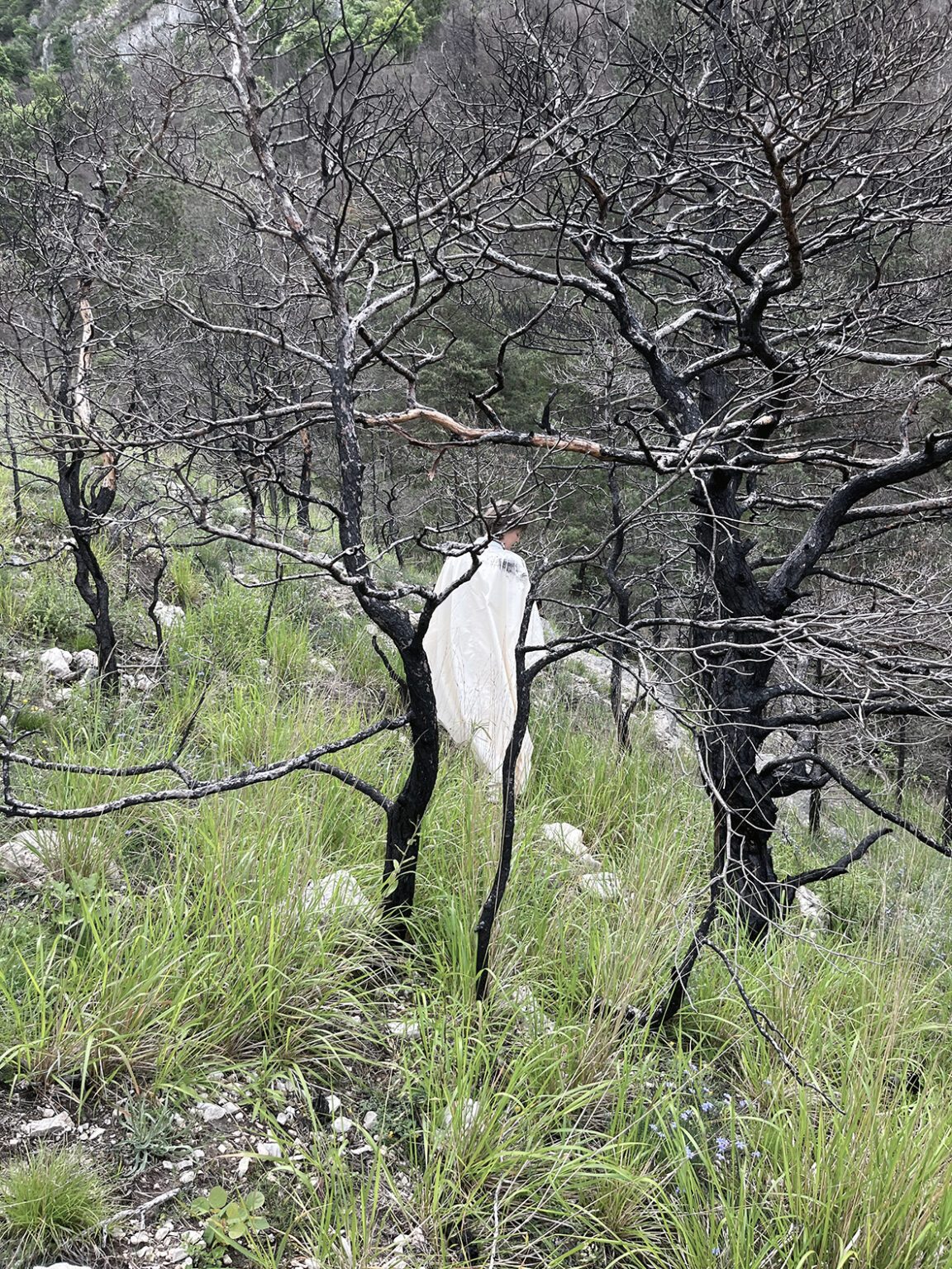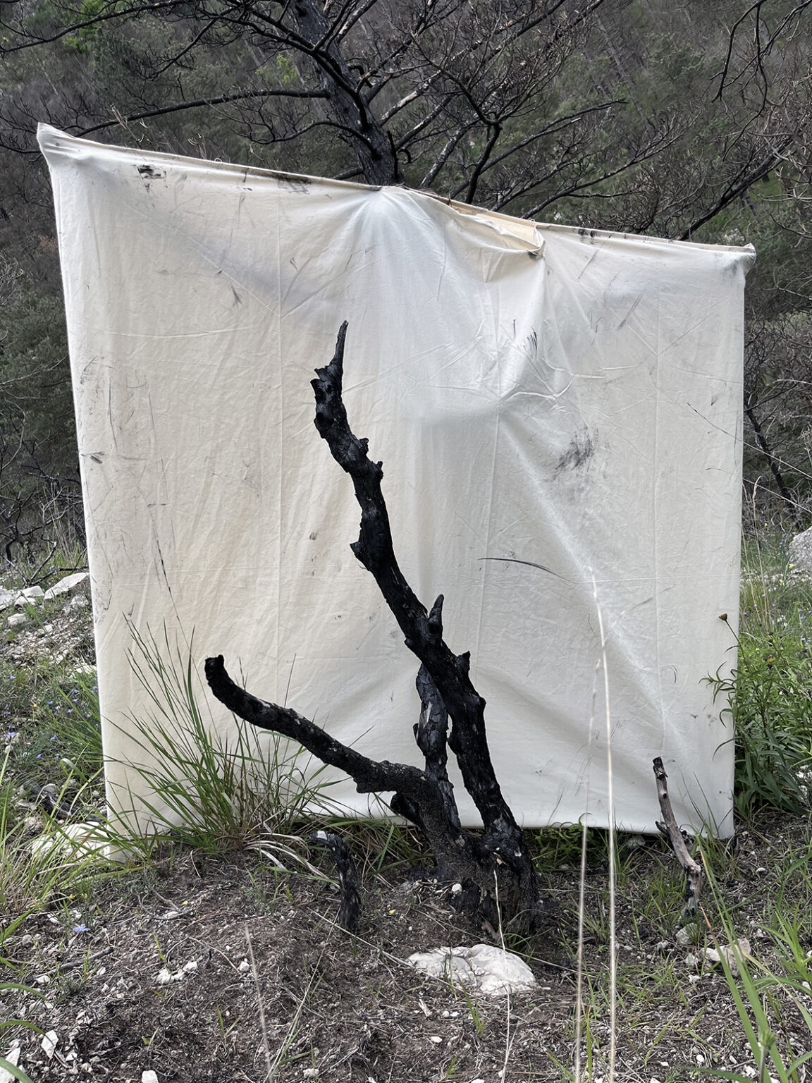 This residency program, curated by Conny Becker, offers artists the opportunity to live and work in Die in the Drôme region of France. The exchange with Berlin’s Lichtenberg Studios, curated by Uwe Jonas, fosters an inspiring cross-cultural dialogue, encouraging experimentation and artistic development within a supportive environment. Ulrike Mohr participated in this residency, deepening her practice through engagement with the local landscape and creative community, and worked performatively within a burned forest area.