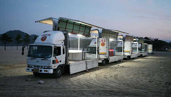Seven artists traveled across South Korea in four trucks, moving west to east along the border between North and South Korea. At stops along the route, the trucks unfolded into interactive spaces featuring table tennis tables – inviting the public to engage, respond, and reflect. The project created a mobile zone of play, encounter, and shifting perspectives – exploring oppositions, thresholds, and connections. Artists (msk7): Mona Babl, Christine Berndt, Won-Yeon Chung, Kati Gausmann, Ricarda Mieth, Ulrike Mohr, Anja Sonnenburg.