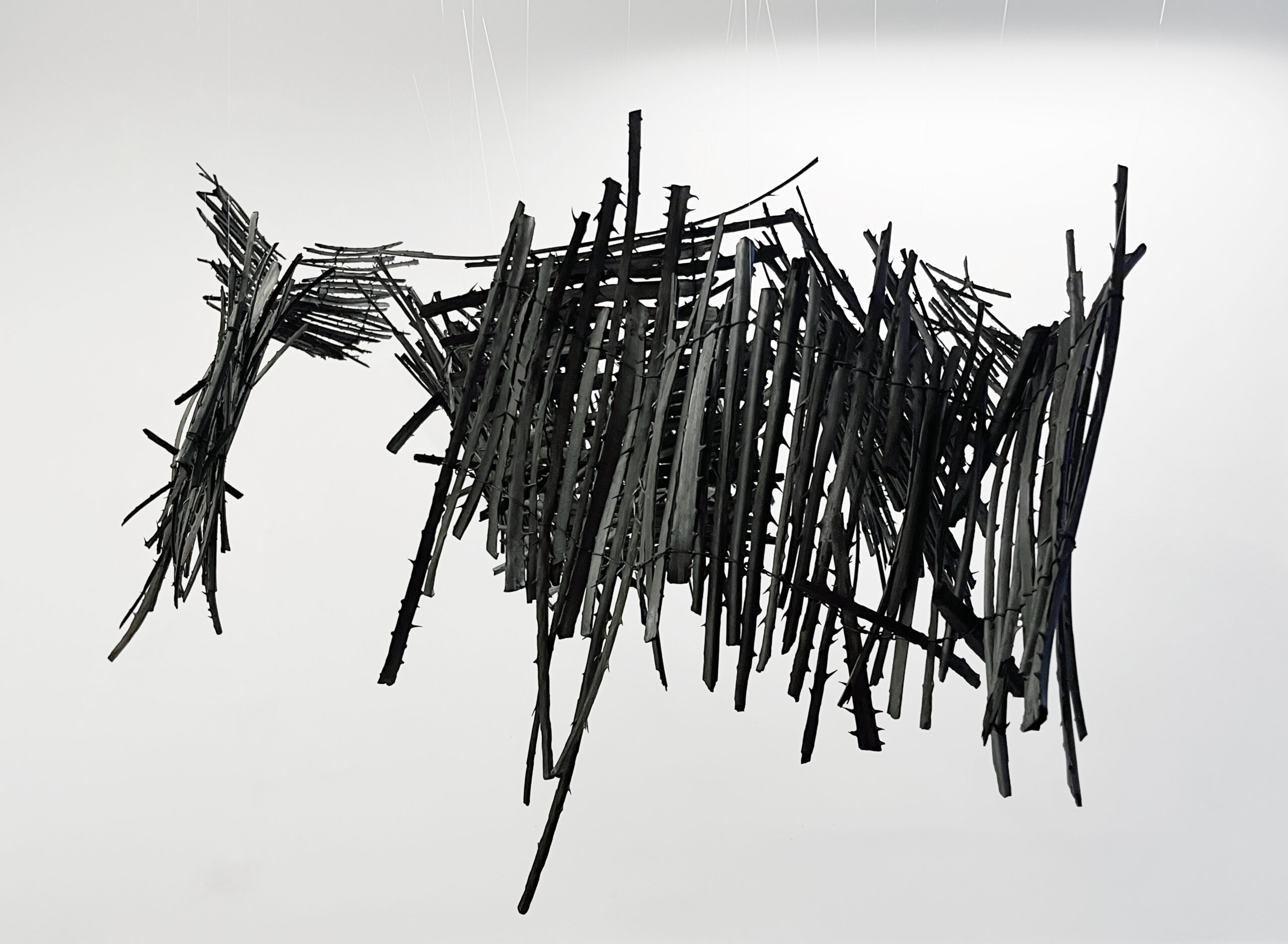 In Silent Geometry, Ulrike Mohr continues her exploration of nature as a drawing of time, material transformation, and ecological temporality. She creates the pieces using a charring process in which the wood serves as both the drawing tool and the sculptural element. In her new works for „Odalisque Berlin: Space for Art and Embodiment,“ the pieces unfold at the intersection of nature’s resistance to order and the delicate geometry revealed by chaos.